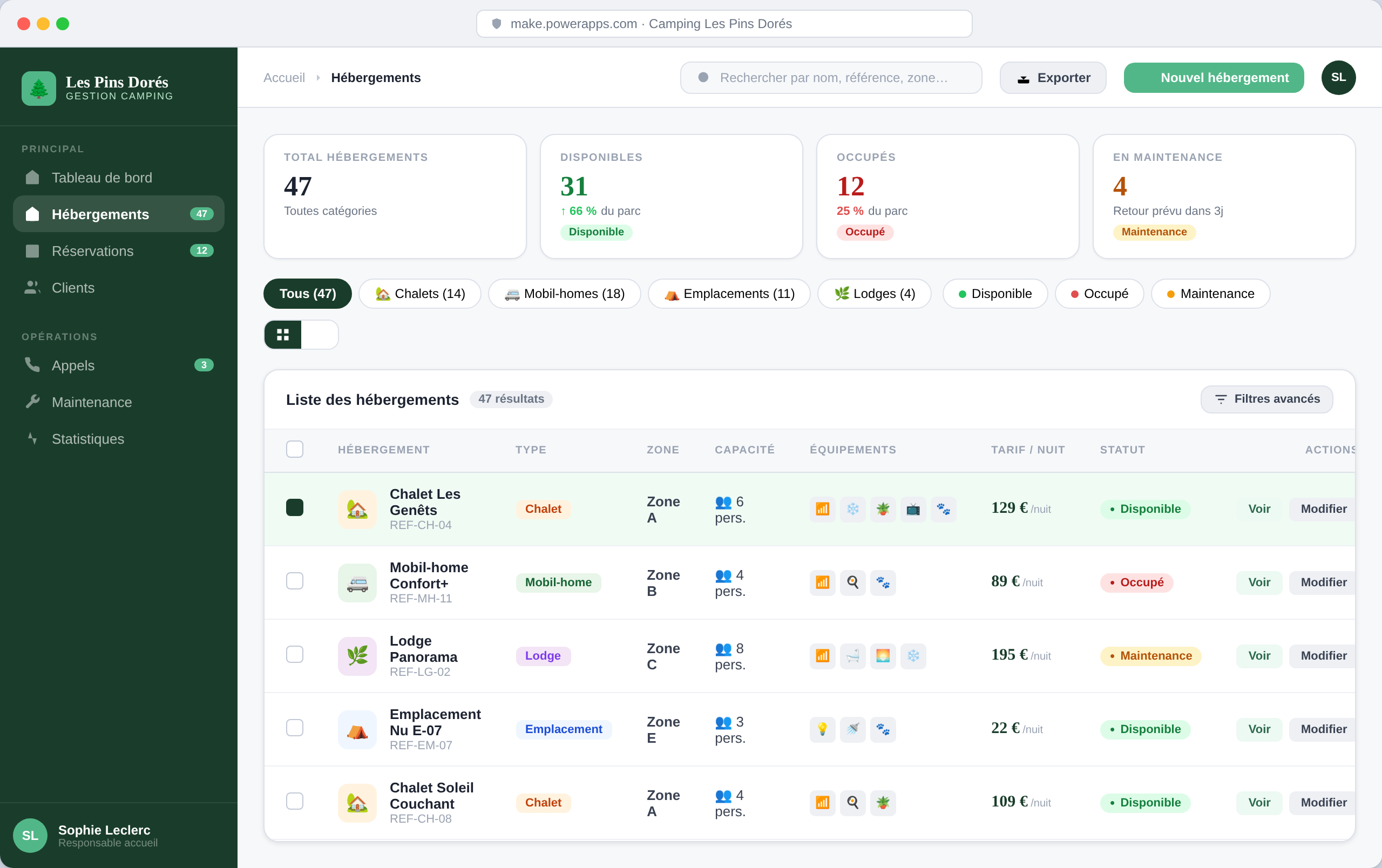 Grâce à ces applications le camping évolue dans un écosystème cohérent et construit dans Microsoft avec Power Apps.