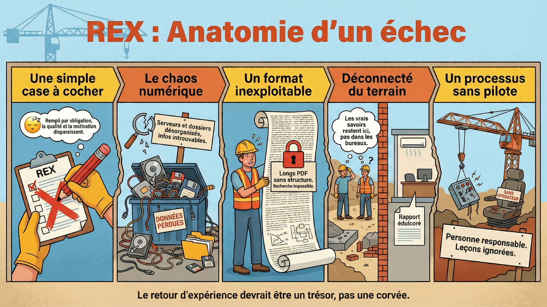 Et voilà comment on se retrouve avec des REX bâclés, remplis de phrases génériques copiées-collées d'un chantier à l'autre. Pas par mauvaise volonté. Par désillusion.